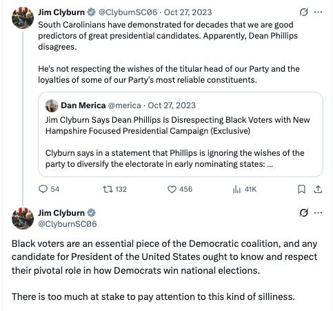 South Carolina Rep. Jim Clyburn, a prominent supporter of the presidentâs, seems to suggest that Phillipsâ candidacy was aimed at ignoring or marginalizing the black voters who had delivered the nomination to Biden.