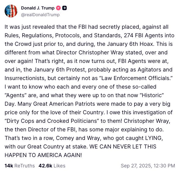 I mean, even FBI Director Kash Patel, a Trump acolyte, felt compelled to cite these facts in the aftermath of Trump’s false comments.